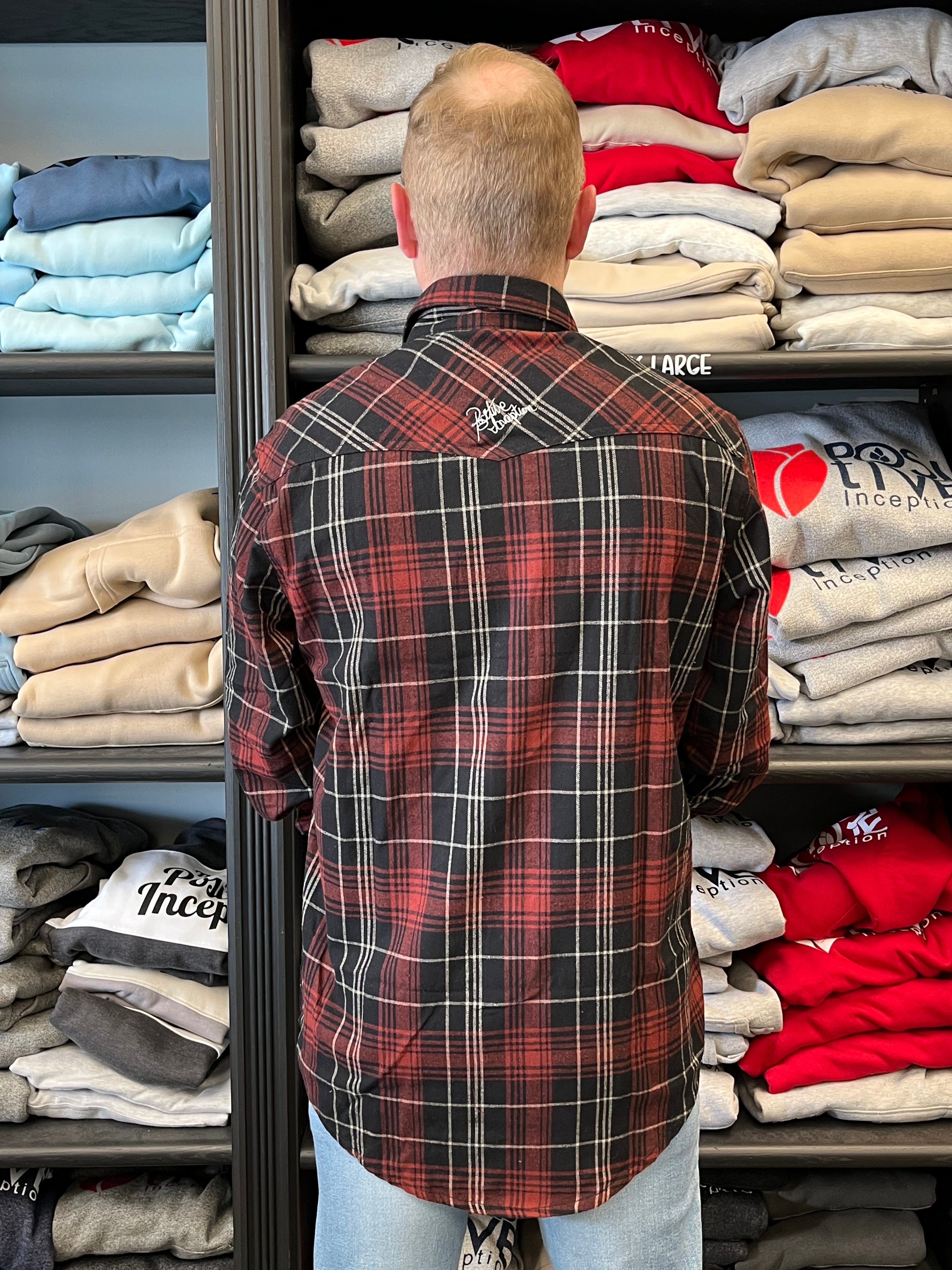 Unisex Chilli and Black Tonal Plaid Long-Sleeve Shirt