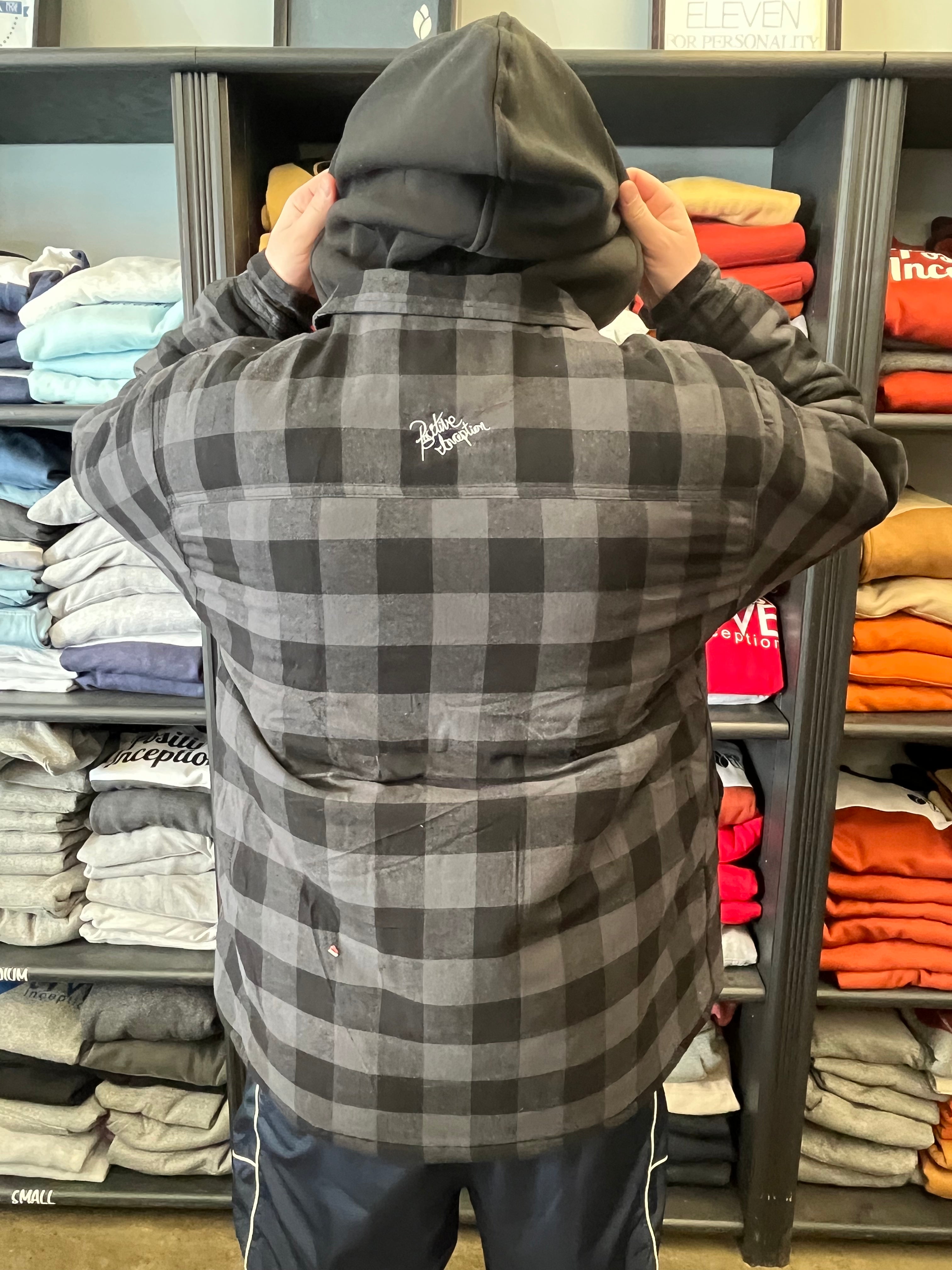 Black and Grey Flannel Hooded Jacket