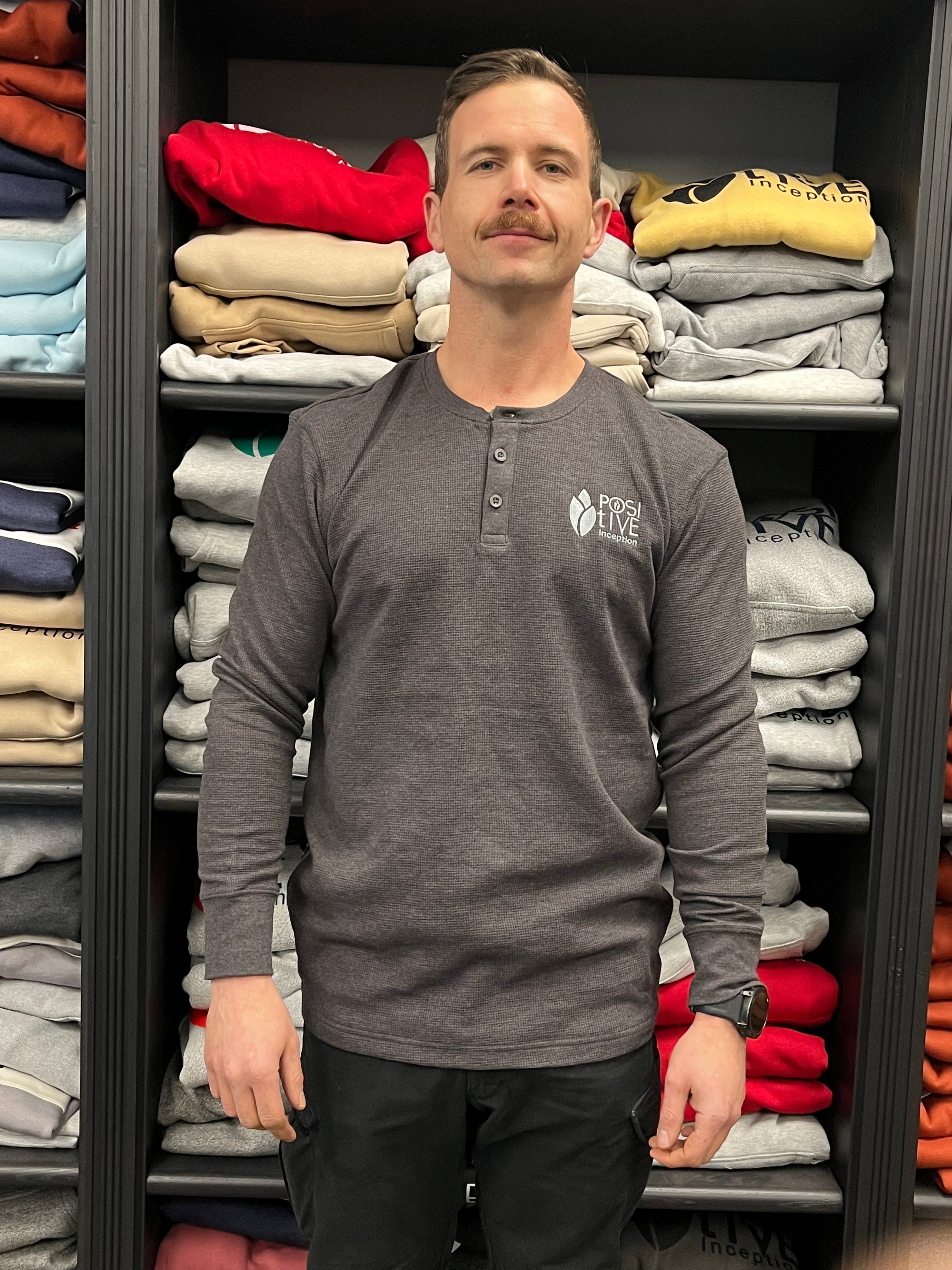 Charcoal Thermal Long-Sleeve Henley - Small is backordered and will ship as soon as it is back in stock.