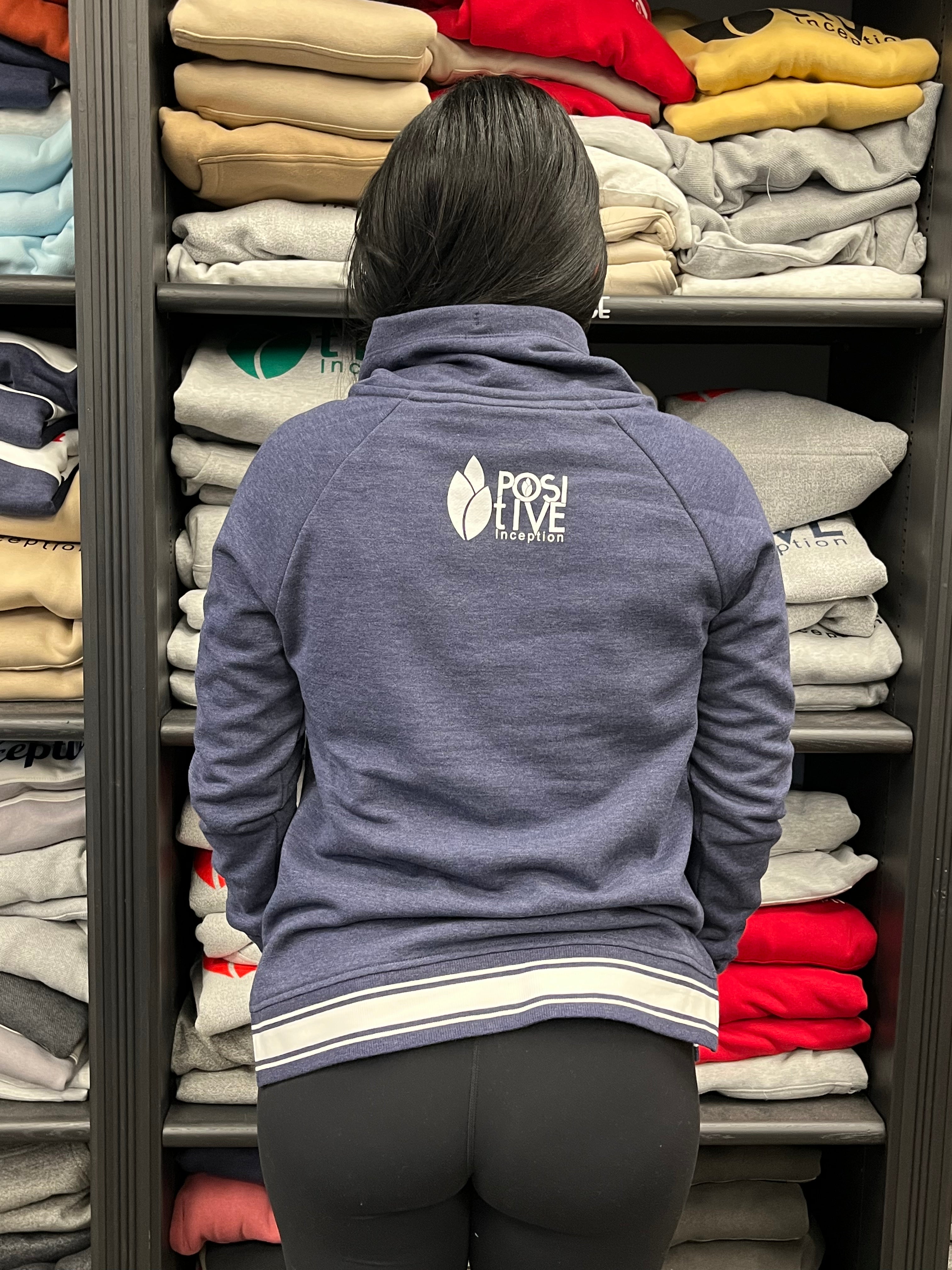 This soft fleece pullover offers a funnel neck fit with striped trim and side vents for added function.